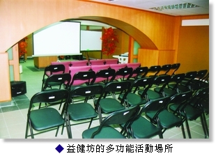 1.3 益健坊 為戒毒者及康復者提供學習及健康活動的場所,設有閱覽區、健身區及綜合活動區,並可進行講座、展覽及交流培訓等活動,藉以提升社會重返及預防重吸的功能。另外,亦可作為聯絡民間戒毒機構之固定場所,例如舉行工作例會、員工培訓、比賽、交流活動。同時益健坊亦開放給民間戒毒機構舉辦各項活動之用。