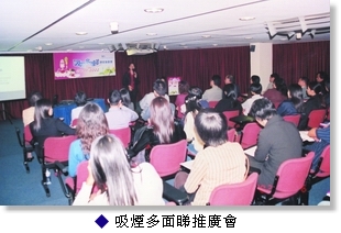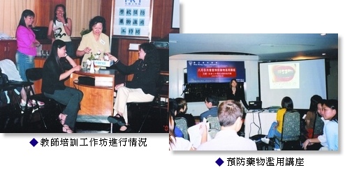 從課後學生所填寫的調查問卷來看,佔九成學生 表示此課程對他們有幫助,多數原因是讓他們更能認清吸煙的害處及有關知識,其次是瞭解到如何拒絕吸煙。從教師問卷來看,他們均認同此套課程的內容及形式是切合學生年齡、能增加學生對吸煙的認識、以及能澄清學生對吸煙的一些誤解。在這些積極正面的回應及支持下,「吸煙多面睇」課程將能繼續推展開去。 (3)禁毒講座及培訓課程 於2002年,向21間中、小學舉辦了30次禁毒講座,共7,520名學生參加。在社區方面,共向民間機構提供了22次講座,有763名青少年及家長參與。同年亦分別向專業人士提供培訓課程及講座,共168人參與,當中包括有老師、警務人員及青少年工作者等。