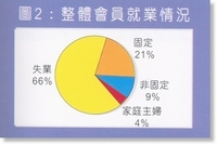 | 有66%會員處於失業情況,而有9%的會員現從事非固定工作,而有穩定工作的則只佔